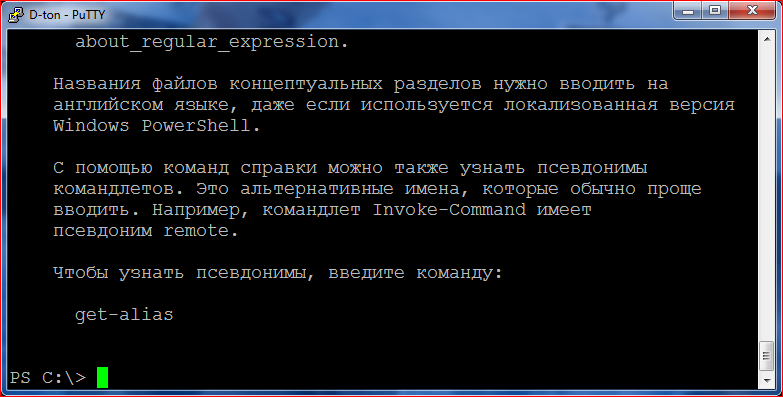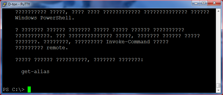 The problem I faced – we have a Russian version of Windows 7. That means if I try to connect it with SSH from Linux I get a question mark in PowerShell replies.