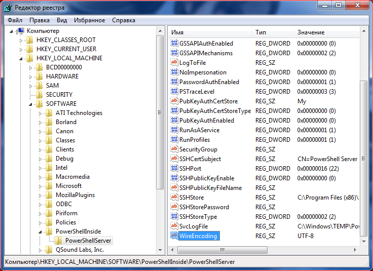 First, I need to make a new string parameter in `HKEY_LOCAL_MACHINE ➜ SOFTWARE ➜ PowerShellInside ➜ PowerShellServer’. The `WireEncoding’ should be set to `UTF-8′.