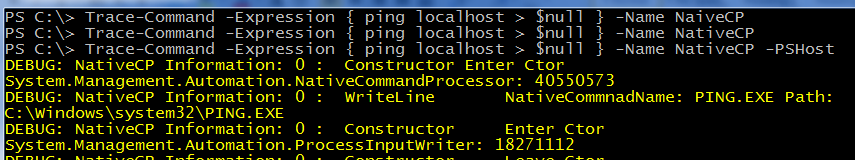 Next thing is listener that will be target of you trace. If you want to actually see anything you have to either enable –PSHost switch, or select –FilePath. If you haven’t, nothing will show up. Once you got both right – you will get some output that may (or may not) give you clue on what is actually going on: