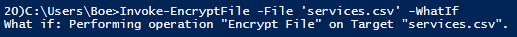 Invoke-EncryptFile –File 'services.csv' –WhatIf