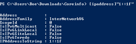 Test-IsValidIP "FE80:0000:0000:0000:0202:B3FF:FE1E:8329"