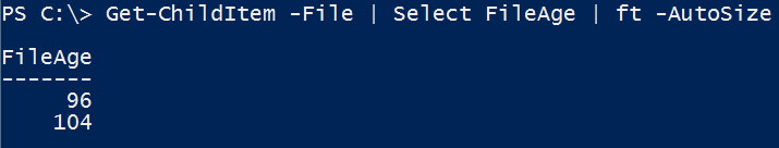 What we are doing in the above command is very straightforward. For every System.IO.FileInfo type of object, we instruct PowerShell to add a ScriptProperty called FileAge and assign the days since the file was created as its value.