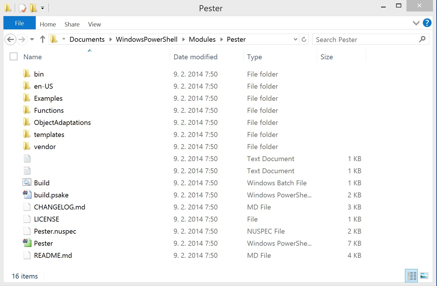 Extract the archive to the Pester folder. When you are done you should have all these files in your Pester directory: