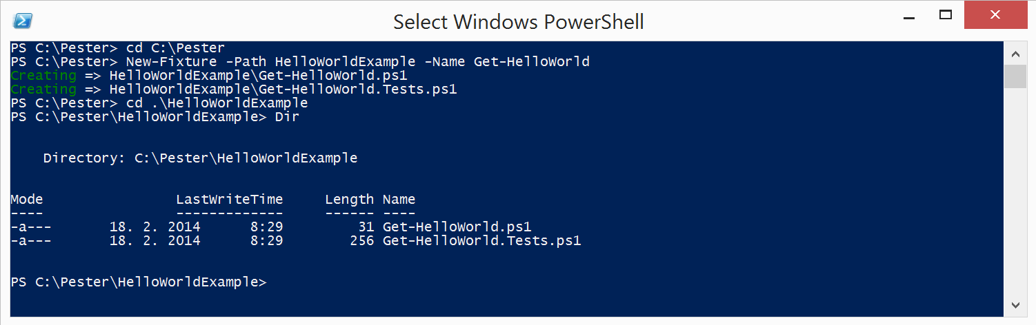 New-Fixture -Path HelloWorldExample -Name Get-HelloWorld