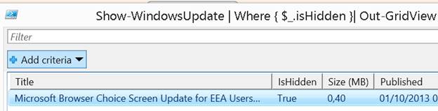 Let’s see how PowerShell can help in this situation and define 2 functions and a filter to view already hidden updates.
