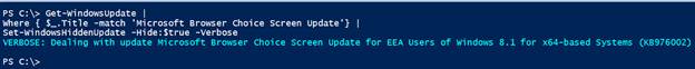Set-WindowsHiddenUpdate -Hide $true -Verbose