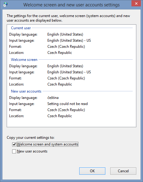 While we worked on Windows 8.1 deployment, we were required to make multiple keyboard layouts available on the Windows logon screen. All our computers came pre-staged with standardized corporate image, so we were not able to put these settings directly into the image. The only possible solution seemed to be using the Control panel > Region and Language Settings > Administrative > Copy settings…