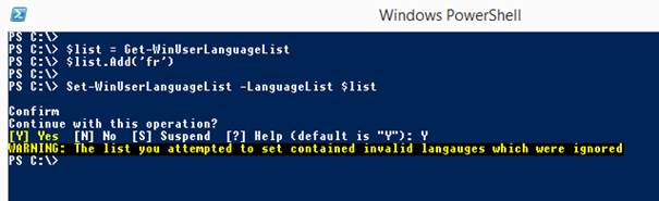 Write-Warning "The list you attempted to set contained invalid langauges which were ignored"