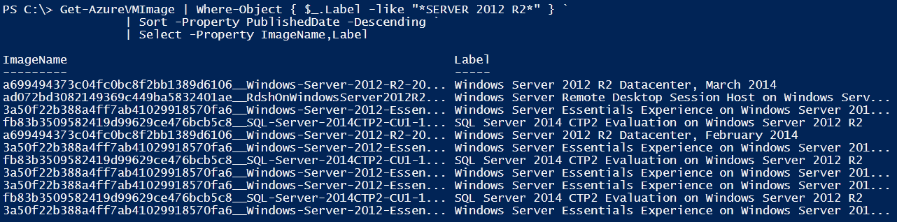 The above code snippet gives us the Windows Server 2012 R2 OS images.