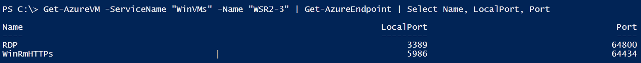 We can see the default endpoints created for this VM using the Get-AzureEndpoint cmdlet.
