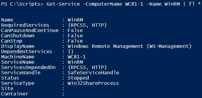 This is straightforward. I just have to see if WinRM service on a target is system is running or not. For this, we can use the Get-Service cmdlet.