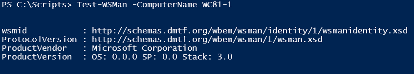We can do this using the Test-WSMan cmdlet. This tells us that the HTTP listener is created and functional.