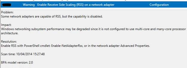 While reviewing results returned by the Best Practices Analyzer on a virtual machine, a warning about RSS (Receive Side Scaling) was raised.