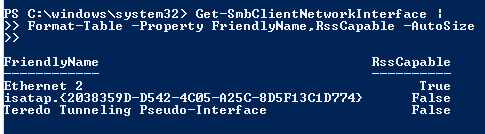 Get-SmbClientNetworkInterface | Format-Table -Property FriendlyName,RssCapable -AutoSize