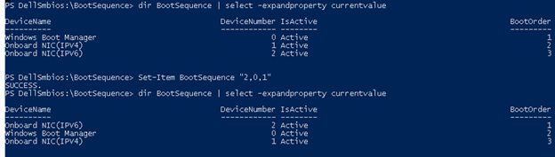 Get-ChildItem DellSmbios:\BootSequence\Bootsequence