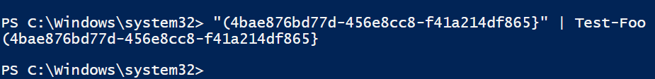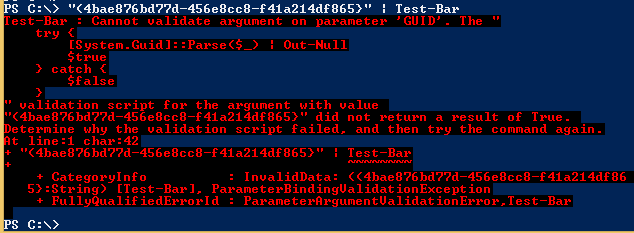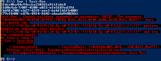The Test-Foo function validates the above GUID although it isn’t valid.