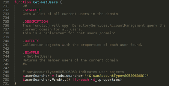PowerView’s Get-Net* cmdlets now handle everything from retrieving the local domain/user, querying Active Directory for domain user and group information, to adding local or domain users and more: