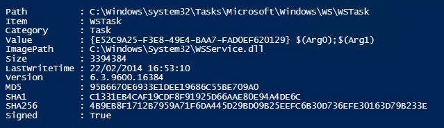 There are also two additional parameters that you may leverage when investigating malware persistence. You may want to get MD5, SHA1 and SHA2 hashes of files and know whether they are digitally signed or not.
