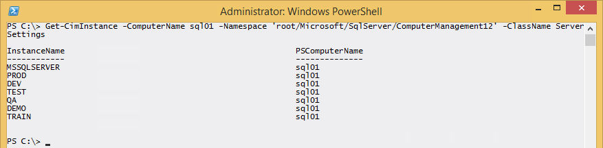 Determining the instances for the server named SQL01 is simple as shown in the following example: