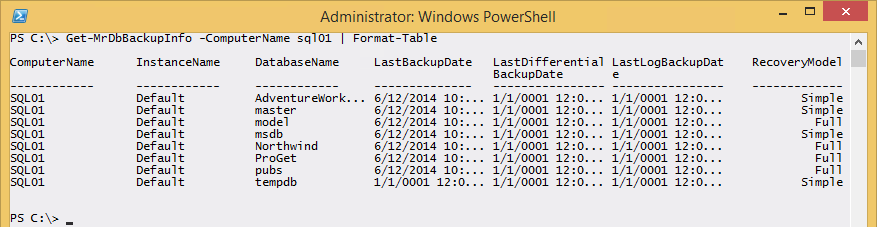 Get-MrDbBackupInfo -ComputerName sql01 | Format-Table