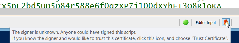 Note that digital signatures automatically protect you from script tampering. So if someone you trust has signed a script, and someone changes this script later, the digital signature becomes invalid, and ISESteroids displays a warning message in its status bar.