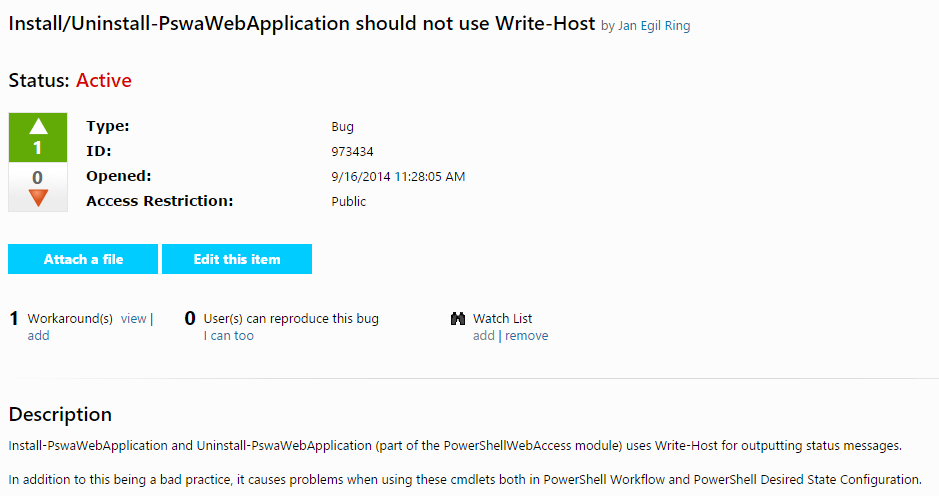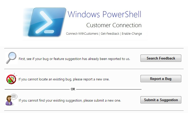 Windows PowerShell is software. Any software, in general, will always have bugs as well as the need for new features and improvements. Microsoft has a feedback channel called Microsoft Connect where customers can report bugs and provide suggestions for feedback to their software. There is a dedicated Connect website for Windows PowerShell: connect.microsoft.com/PowerShell