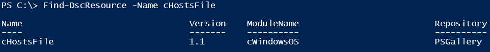 The PSDesiredStateConfiguration module in Windows PowerShell 5.0 Preview has a new cmdlet called Find-DscResource. Don’t confuse this with Get-DscResource. The Get-DscResource gets all DSC resources available on the local system whereas Find-DscResource gets you DSC resources from the PowerShell Gallery or any other repository specified using the -Repository parameter.