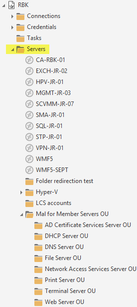 What we are going to create next is the Servers folder and Remote Desktop connections on the left side.