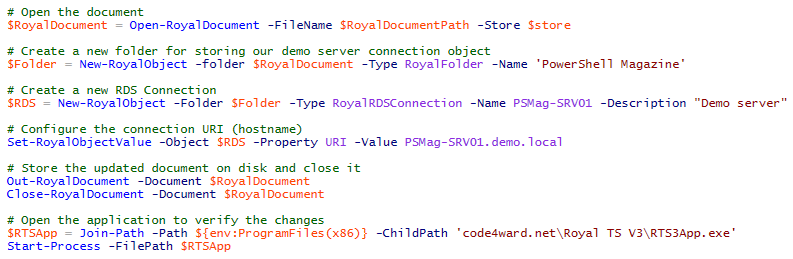 The ability to automate Royal TS documents using PowerShell opens up many interesting scenarios.