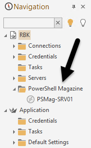 The inline comments should describe what is happening. When the code is executed, Royal TS opens up, and we can see the new folder and Remote Desktop connection is present: