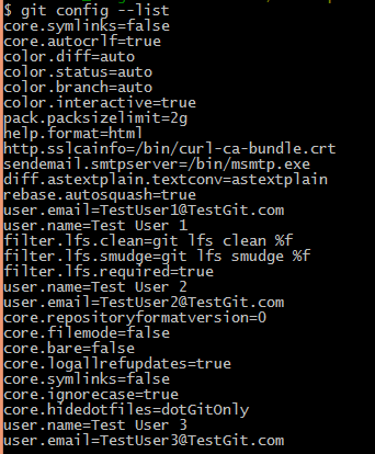 We can see all the settings in the order of precedence by using git config –list command.