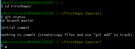 This initializes an empty Git repository under the home directory of the logged in user. Running git status inside the repository reveals that there are no files that are tracked.
