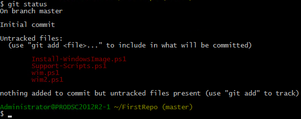 Running git status now shows that I have some files that are in the repository directory or the working tree but are untracked.