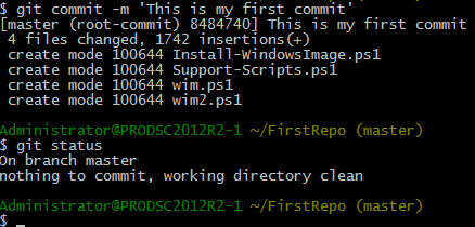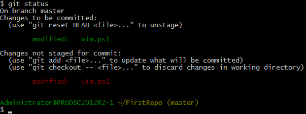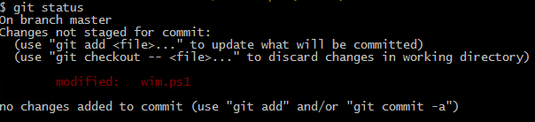 Instead of doing a commit now, let us modify this file (wim.ps1) again and check git status.