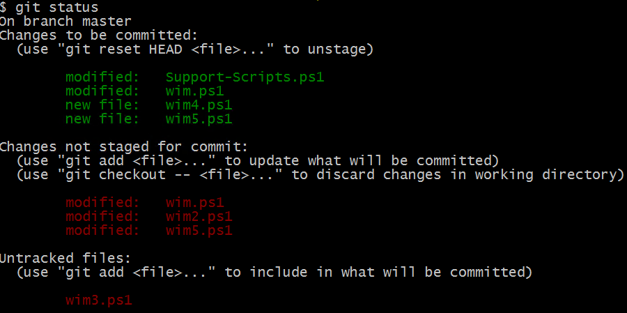 - The status M next to newly added wim5.ps1 indicates that the file was modified after it was staged.