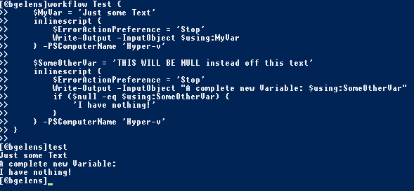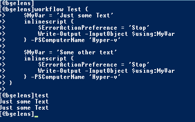 In this example there is no specific reason to specify ErrorActionPreference as stop but this invokes the bug. When run it you would expect that two lines will be shown: ‘Just some Text’ and ‘Some other text’. However, it will output ‘Just some Text’ 2 times. The bug here has broken the Using scope functionality!