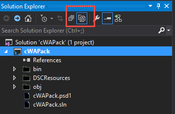 Right click the cWAPack.psd1 file and select “Include in project”. Do the same for the DSCResources folder. The items which have become part of the project are colorized for visual reference.