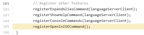 On line 105 in main.ts the OpenInIseCommand is registered: