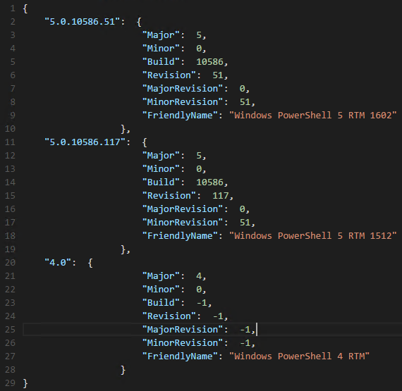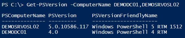 Because of this difficulty, I decided to create PowerShell function which can read a mapping table and convert the PSVersion property to a “PSFriendlyVersionName” which makes more sense to a user. Here you can see Get-PSVersion in action: