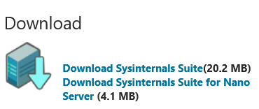 The new Sysinternals Suite for Nano Server is available as a separate download on the Sysinternals Suite on TechNet:
