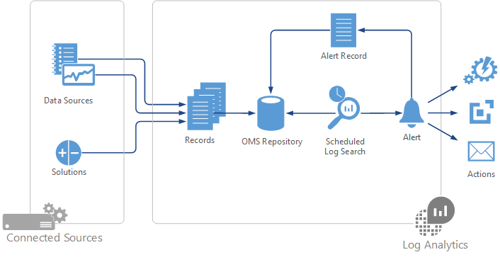 You can read more about how Alerts in Log Analytics works in the documentation, but in a nutshell it makes it possible to set up a log search which will trigger an alert based on your own criteria: