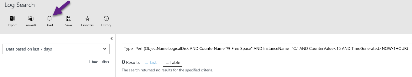 As you probably can guess based on the query, the scenario we want to enable an alert for is C: volumes with less than 15% of free space.