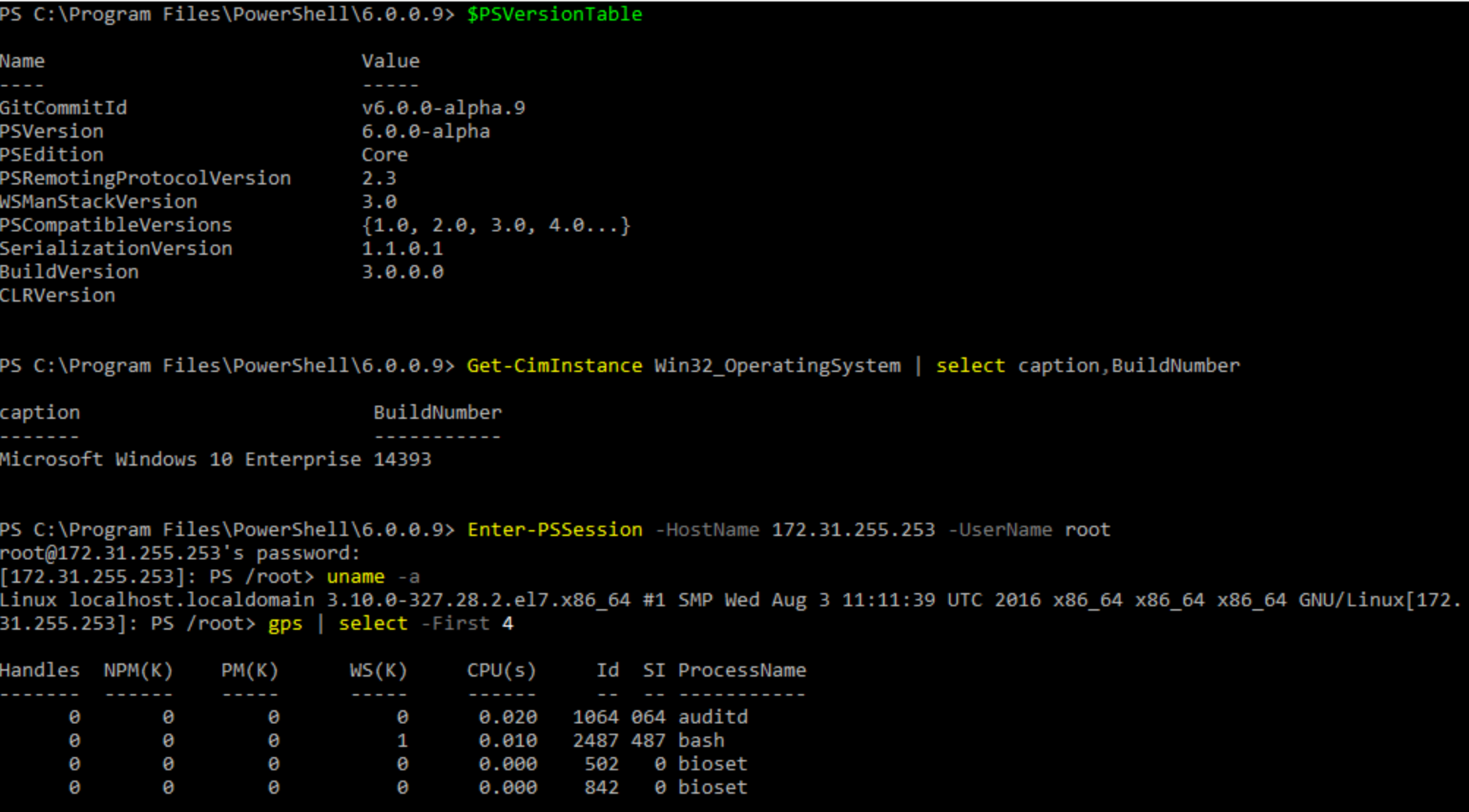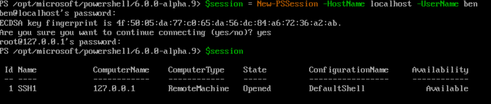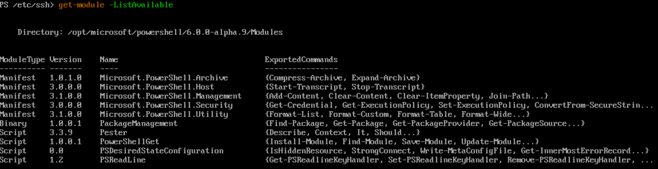 Another exciting capability I’ve been waiting for is PowerShell remoting over SSH! With PowerShell 6.0.0-alpha.9, all core requirements to make this possible have been introduced.