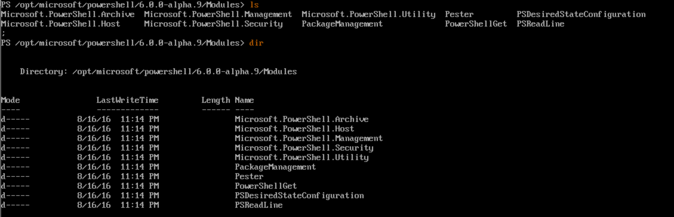 What can you expect in Alpha release of PowerShell on Linux? Anything that is related to the core PowerShell functionality works as expected. We have whole group of the object-related commands, we have commands to import, export, and convert multiple file formats. Modules are available and we can create our own modules using PowerShell syntax.
