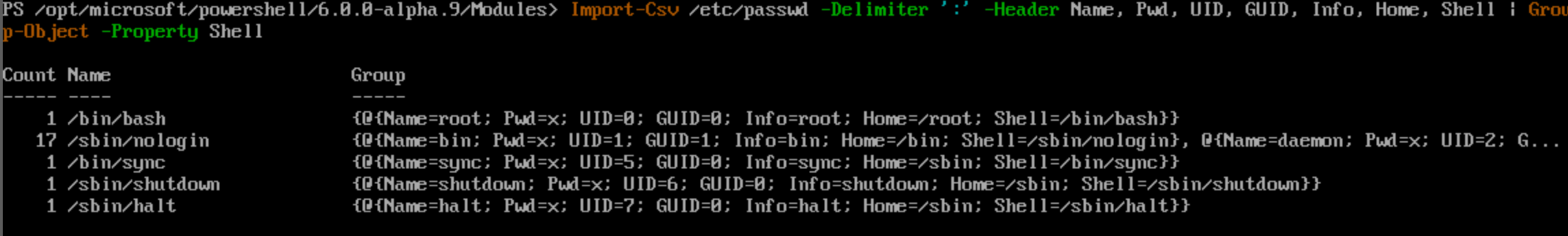 We can also turn Linux configuration files into complex objects. Perfect example: grouping existing users based on their shell: