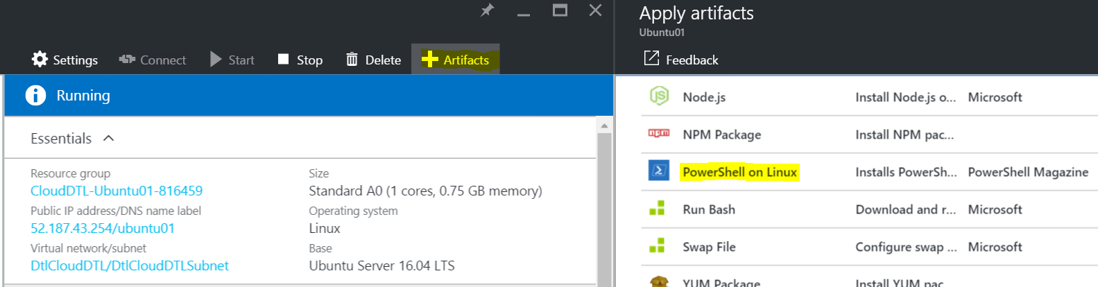 Azure DevTest Labs Artifact for Installing PowerShell on Linux