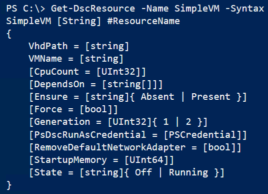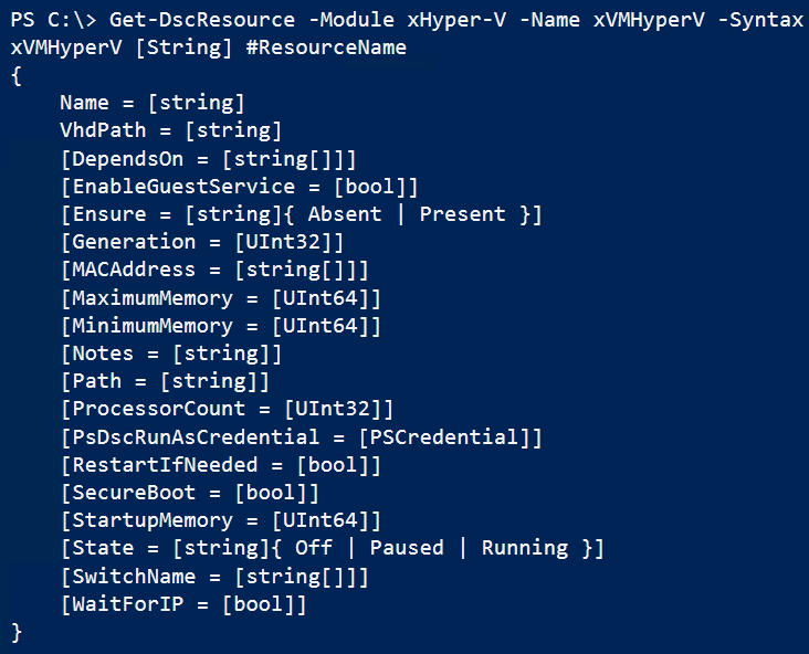 Note: This is not yet in my public release of cHyper-V module. If you want to give this a try, just give a shout and I will be able to invite you to try a few more things along with this.