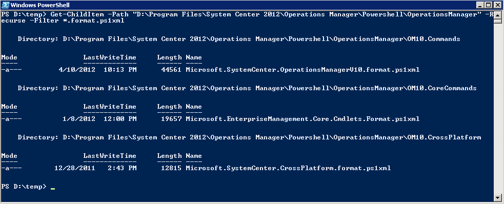 PS> Get-ChildItem -Path $path -Recurse -Filter *.format.ps1xml- I’ve installed Operations Manager on my D: drive, default it’s installed on your C: drive.