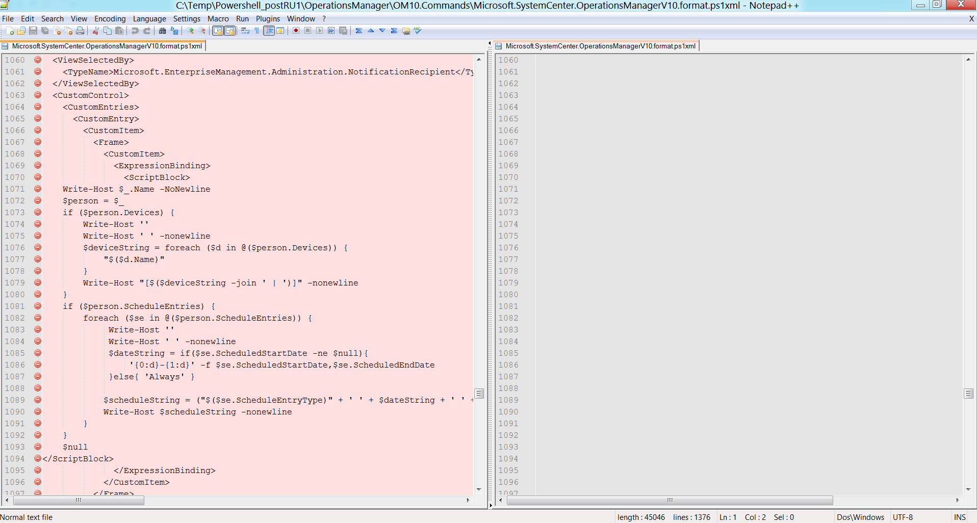 And that’s exactly what James did with the suggestions I made for some of the earlier formatting in the Beta releases of System Center Operations Manager 2012, changing the format.ps1xml files for System Center Operations Manager 2012. How do we know what has changed since the last RTM Release? Just compare the Release to Manufacturing (RTM) formatting files with the new UR1 formatting files.