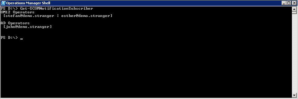 We can now run the Get-SCOMNotificationSubscriber cmdlet from the Operations Manager Shell to see the cool formatting improvements in RU1.